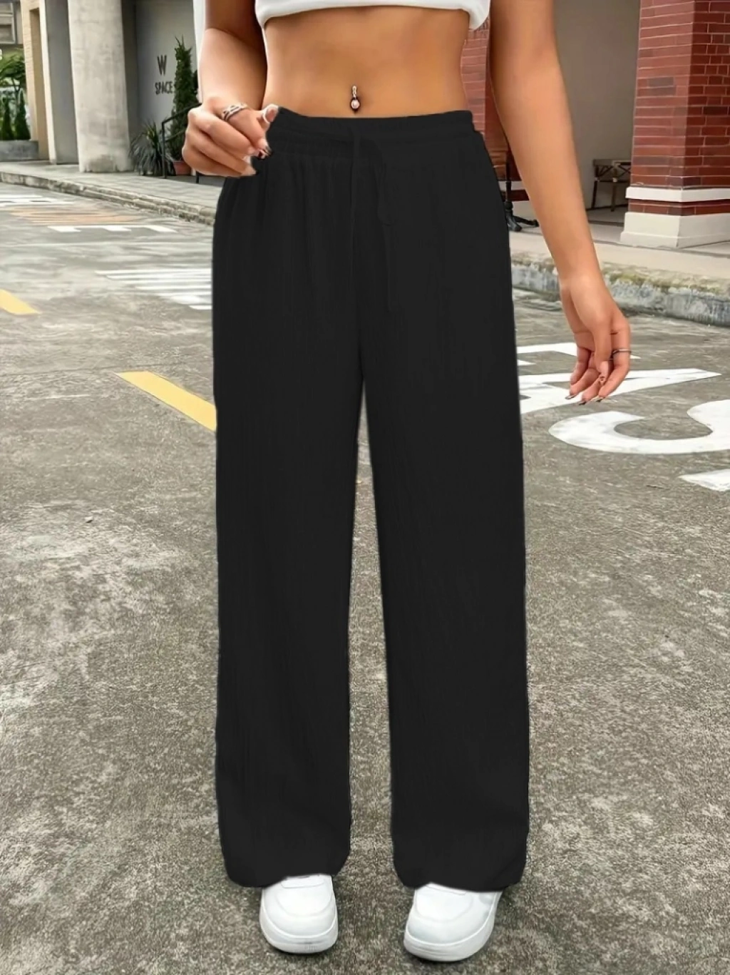 Kadın Yüksek Bel Bol Paça Bürümcük Pantolon