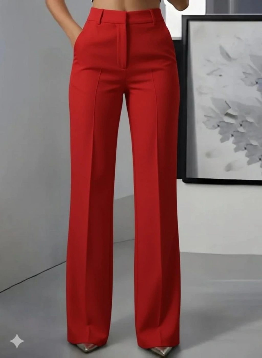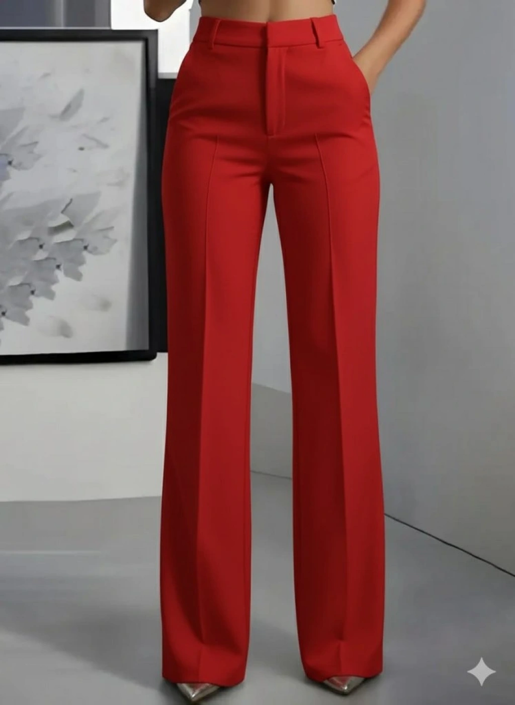 Kadın Yüksek Bel Cepli Ithal Krep Pantolon