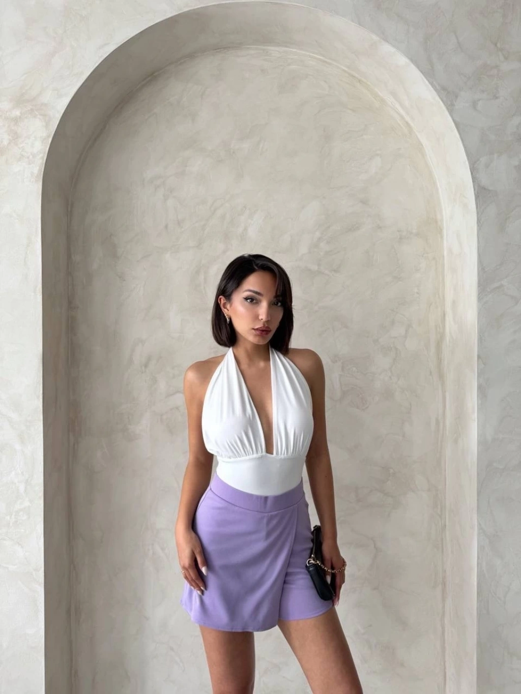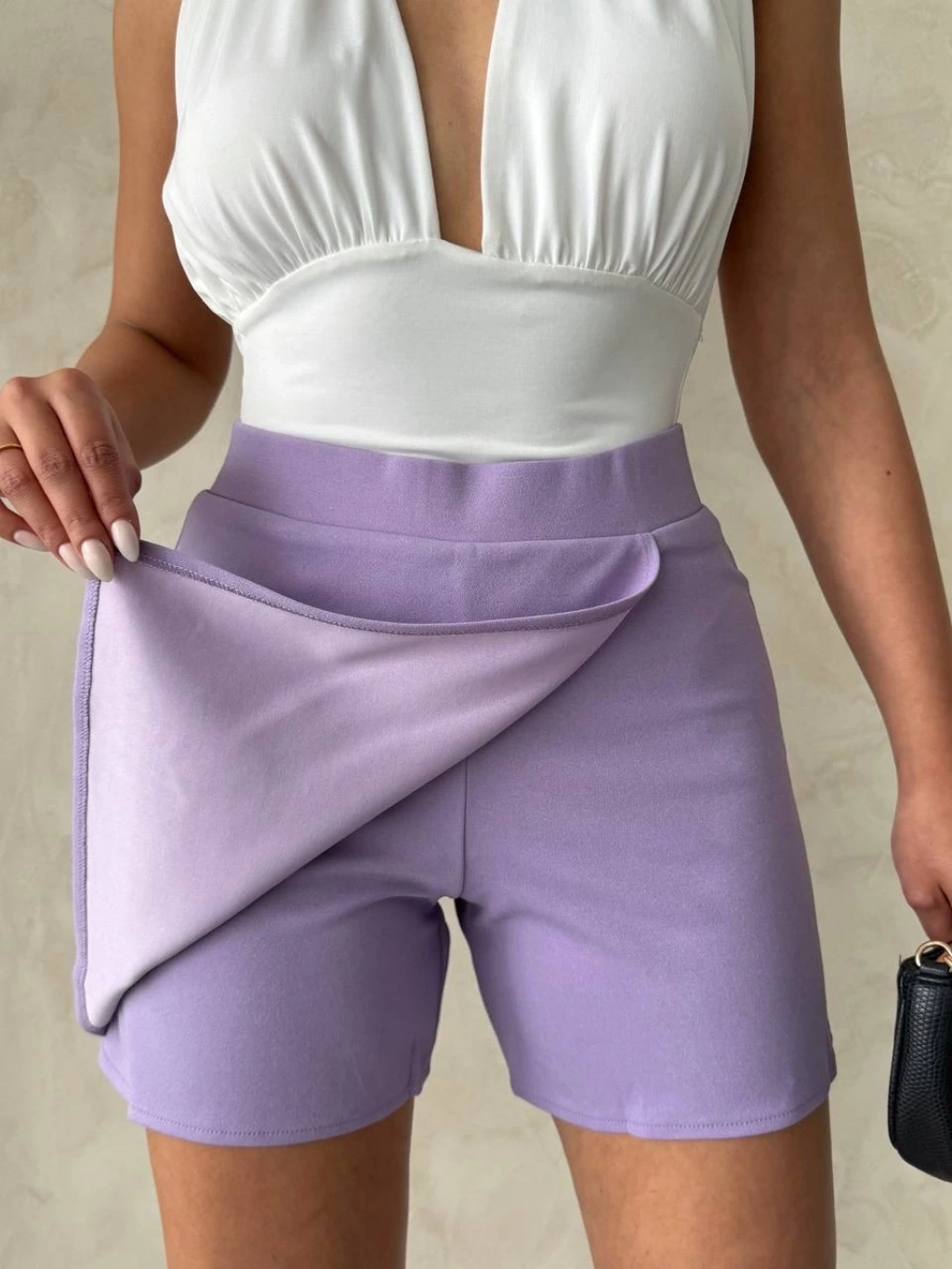 Kapaklı şort etek lila s208