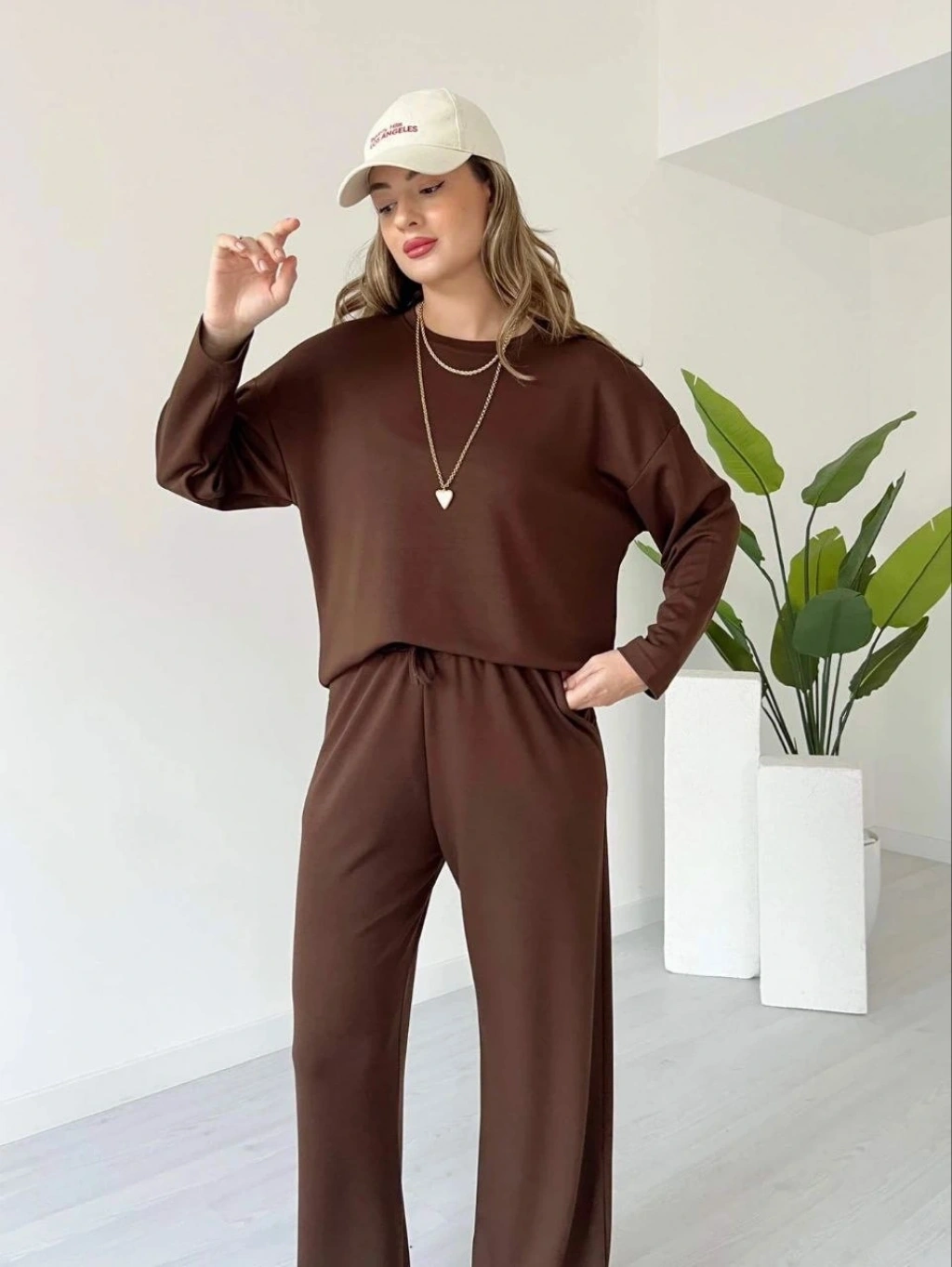 Kollu modal takım kahve