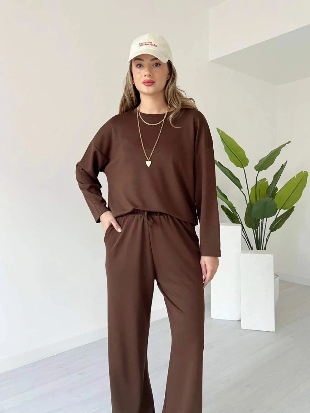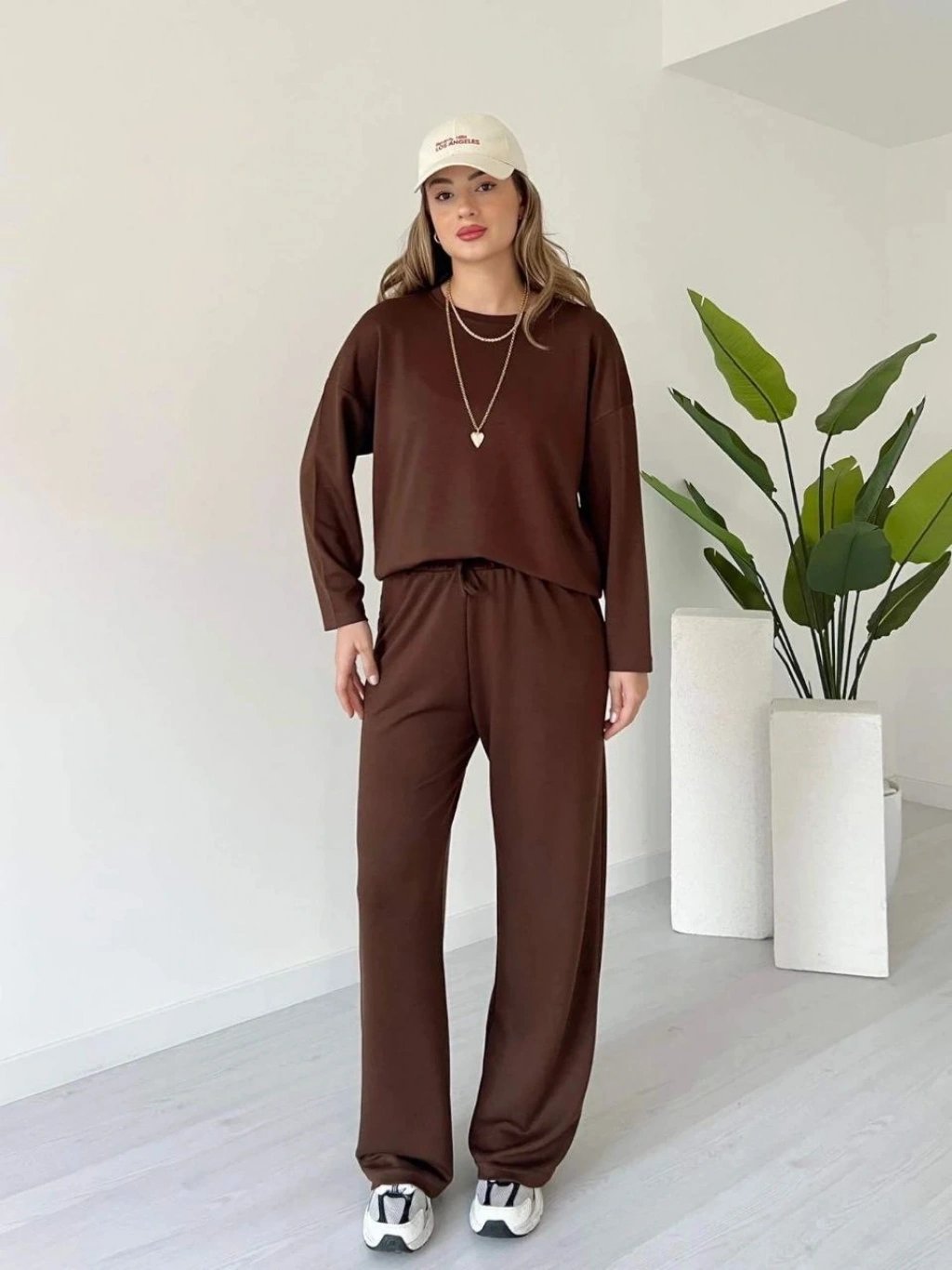 Polo yaka alt üst kollu modal takım kahve pt