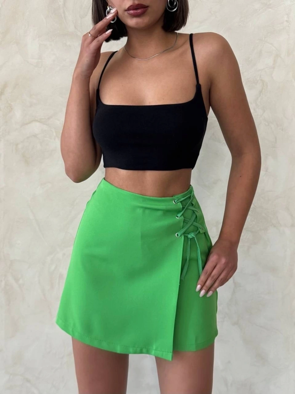 Kuş gözü şort etek yeşil s25819