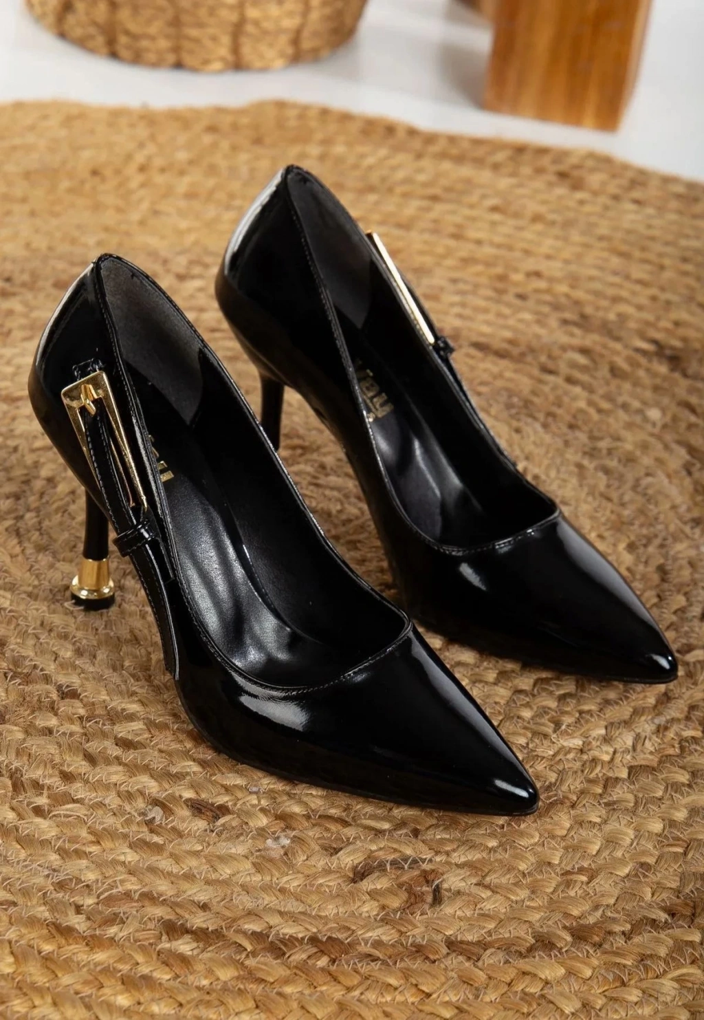 Jioni Siyah Cilt Topuklu Ayakkabı