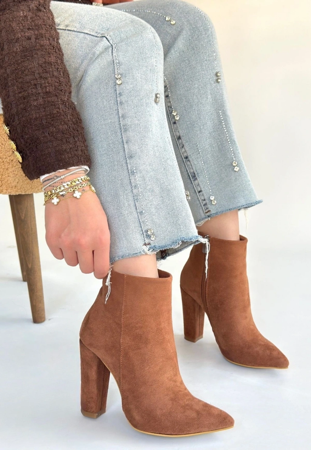 Orjen Kahverengi Cilt Streç Topuklu Bot
