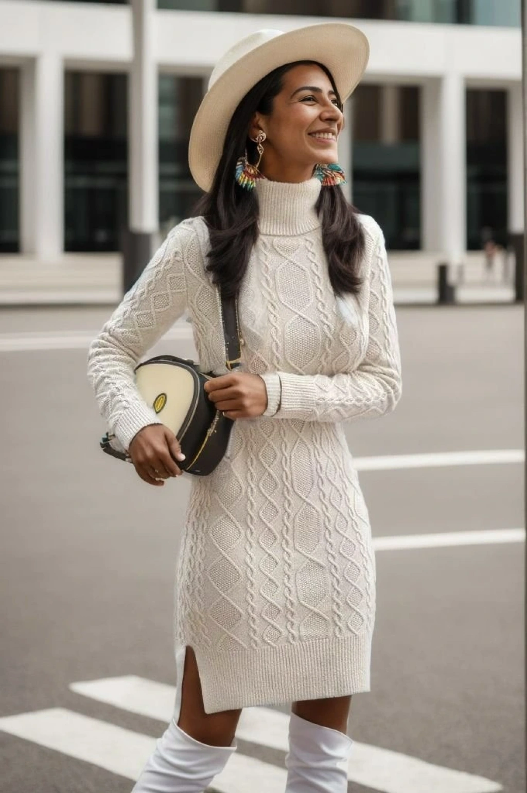 Loren Yünlü Motifli Midi Boy Triko Elbise