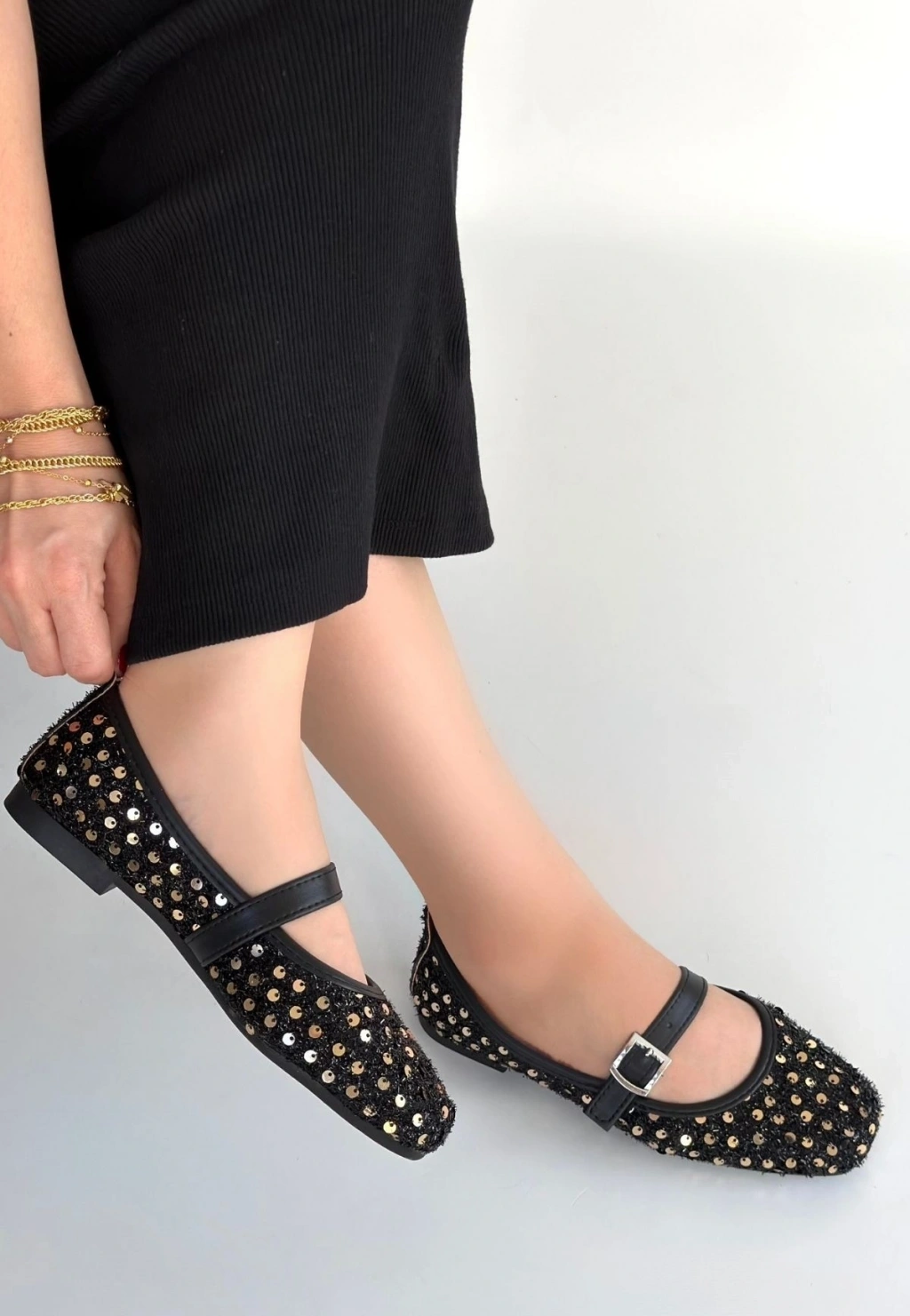 Zaty Siyah Süet Siyah Pullu Babet Ayakkabı