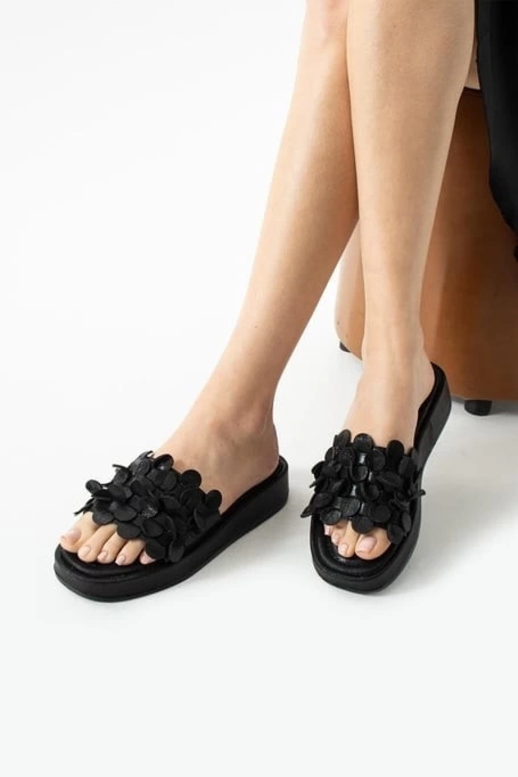 Caren Siyah Cilt Topuklu Terlik
