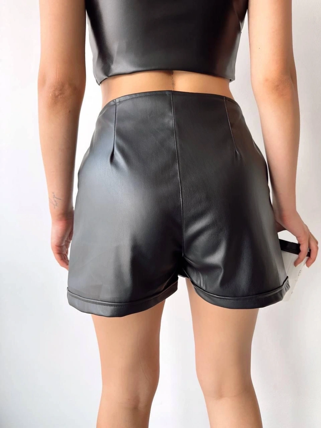 Kapaklı kaşe şort etek siyah beyaz kazayağı h261218