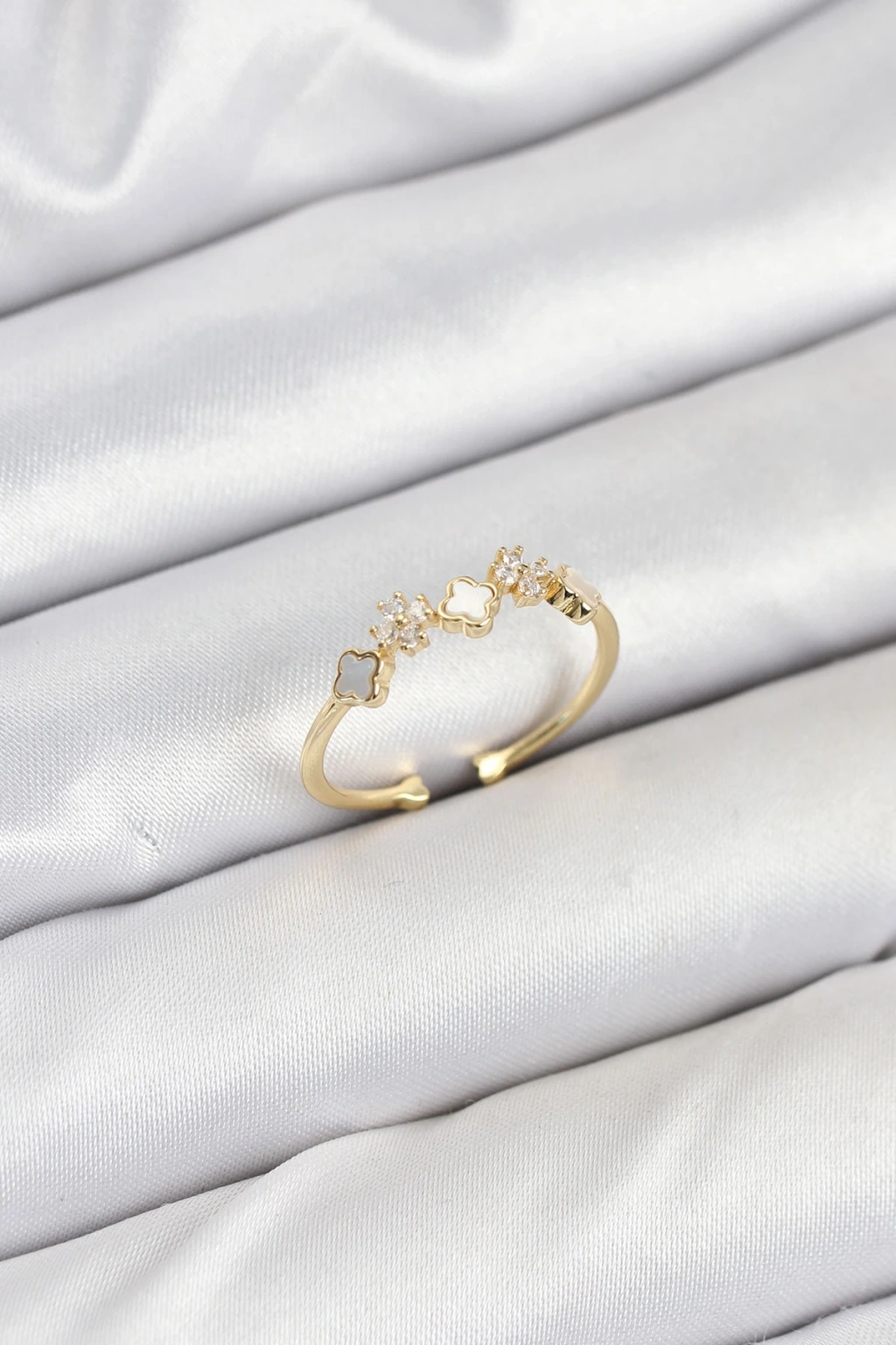 Pirinç Gold Renk Minimal Yonca Detaylı Kadın Yüzük