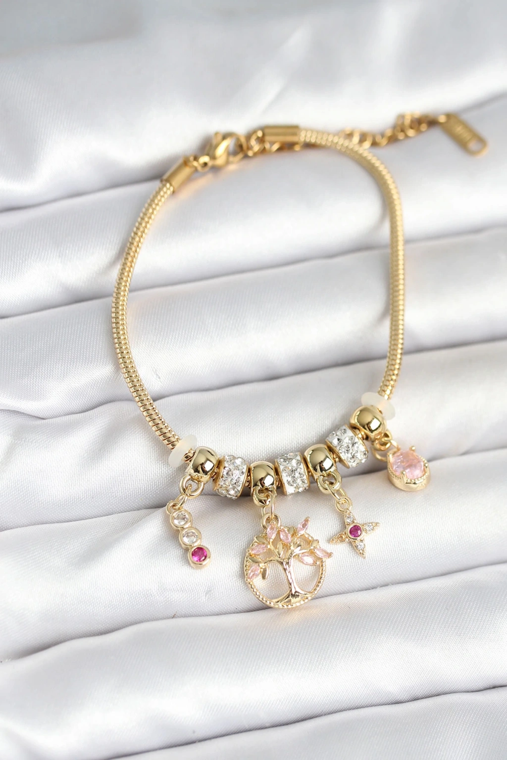 Pirinç Gold Renk Yaşam Ağacı Charmlı Kadın Bileklik