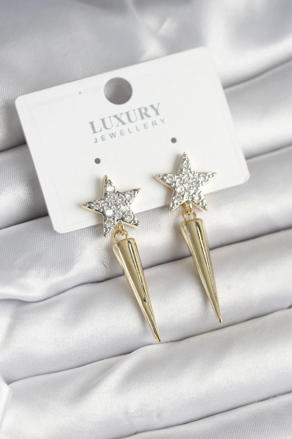 Pirinç Gold Renk Zirkon Taşlı Yıldız Model Çivi Kadın Küpe
