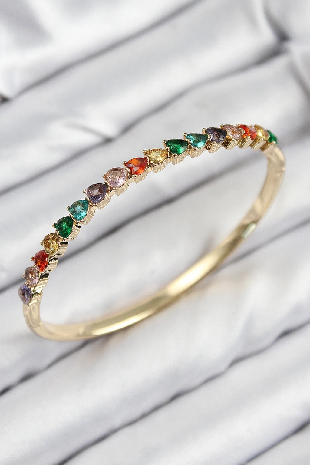 Pirinç Renkli Zirkon Taşlı Kalp Model Gold Renk Kadın Kelepçe