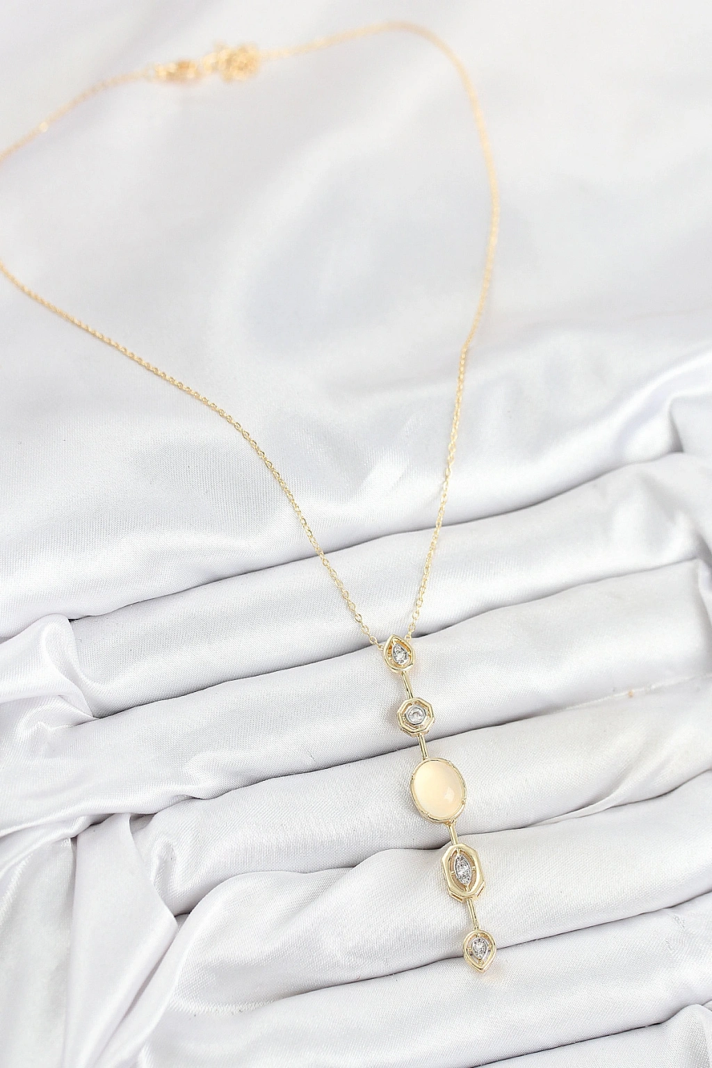 Pirinç Zincir Sarı Gold Renk Zirkon Taşlı Y Kolye