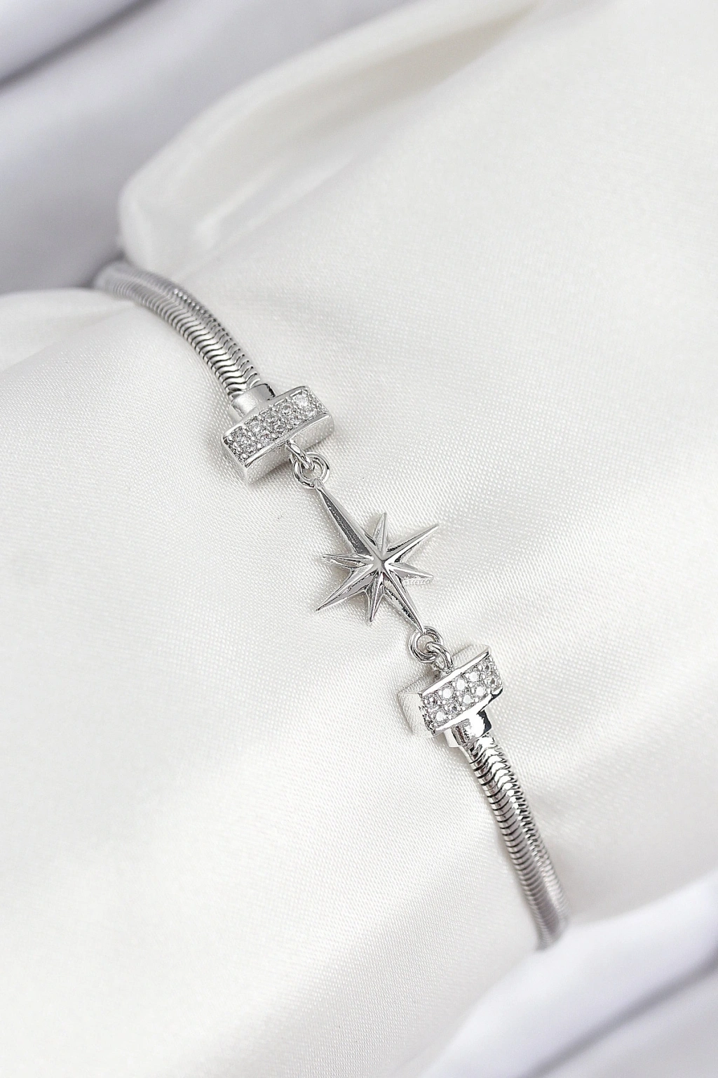 Pirinç Zirkon Taşlı Kutup Yıldızı Model Gümüş Renk Kadın Bileklik