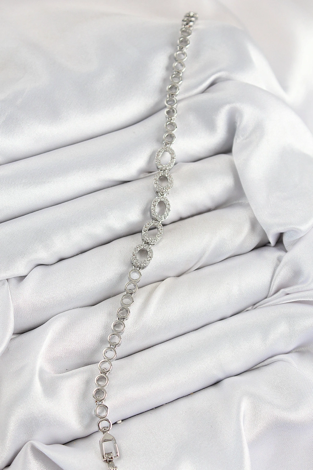 Pirinç Zirkon Taşlı Oval Model Gümüş Renk Kadın Bileklik