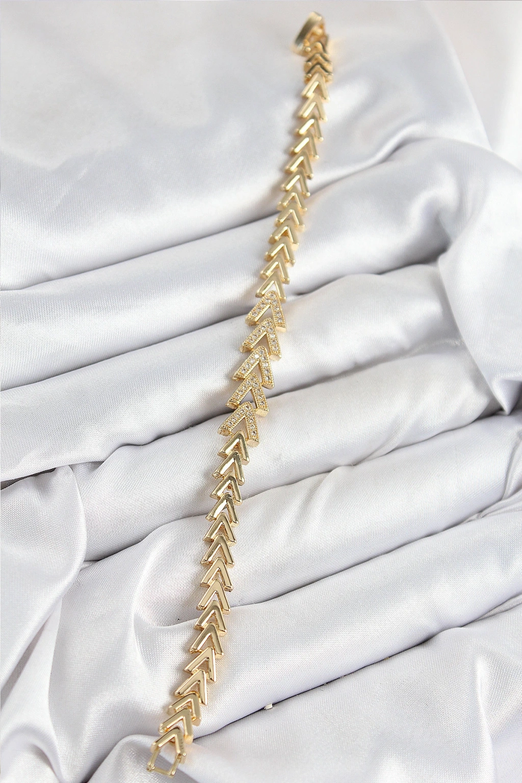 Pirinç Zirkon Taşlı Sıralı Ok Model Gold Renk Kadın Bileklik