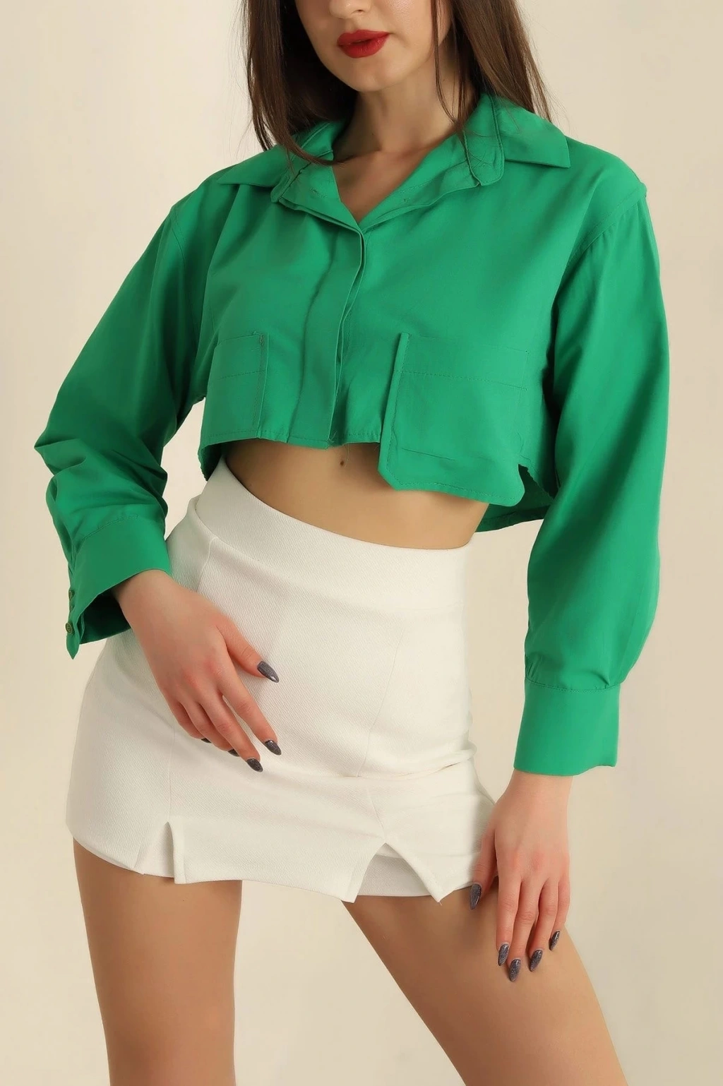 Çift renkli kısa gömlek vizonbeyaz s4021