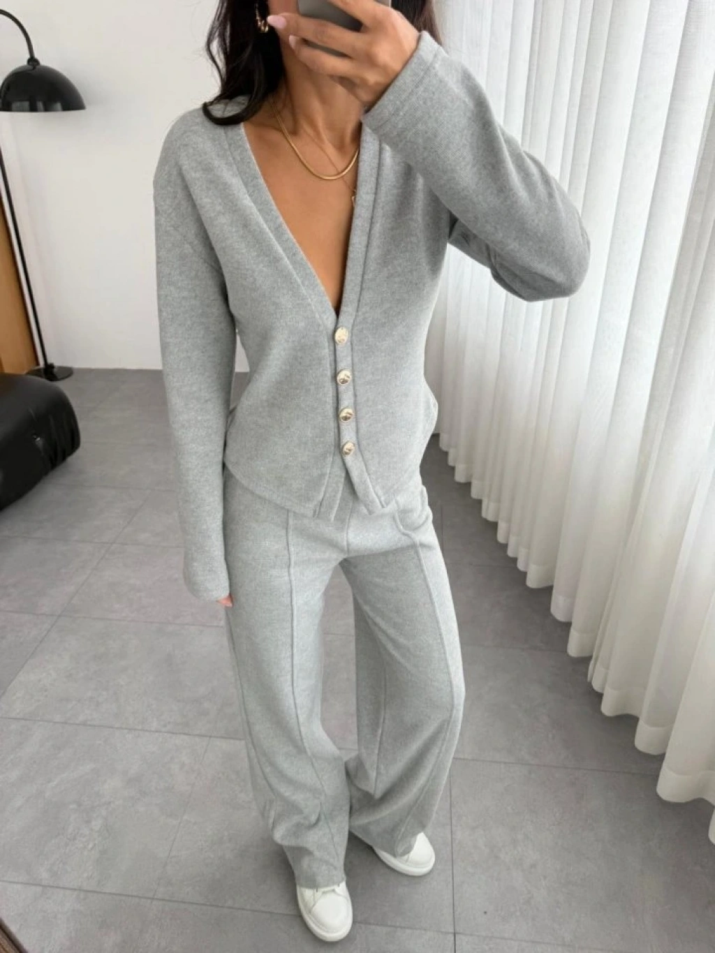 Selanik Kumaş Ön Düğmeli Ceket Çımalı PantolunTakım
