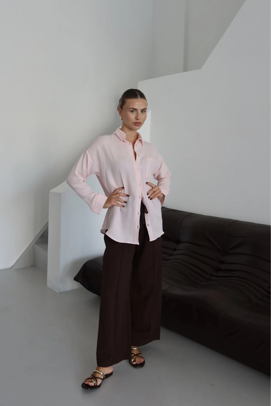 Tek cepli müslin gömlek kahve pt