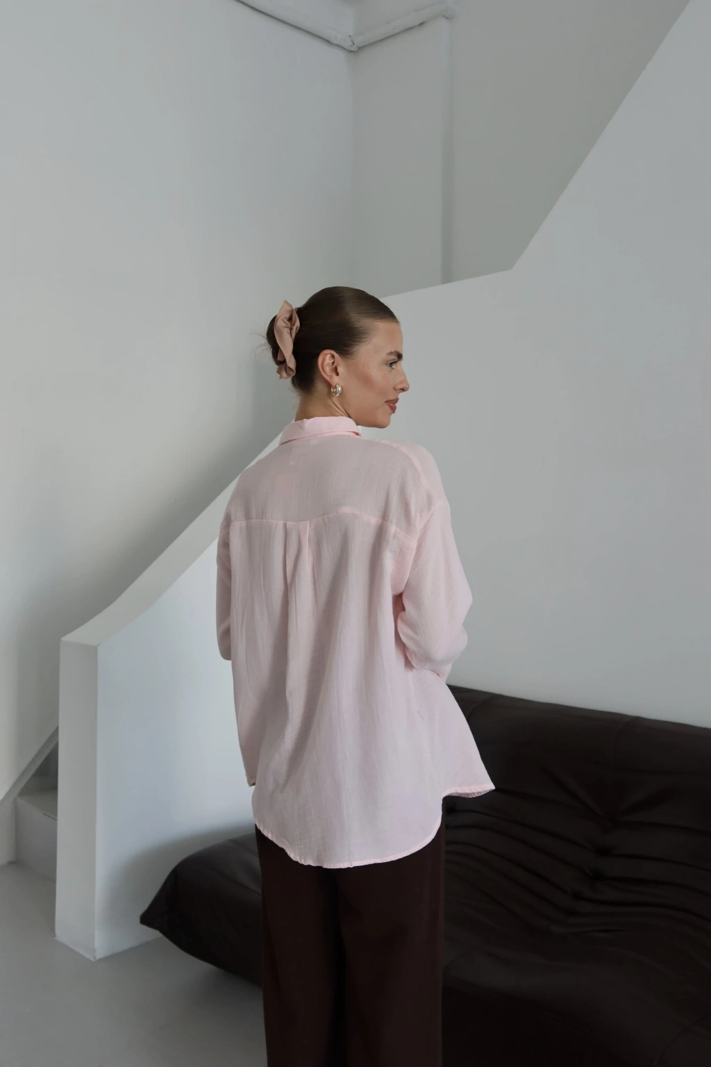 Tek cepli müslin gömlek pembe pt