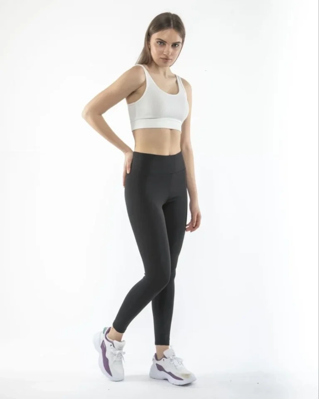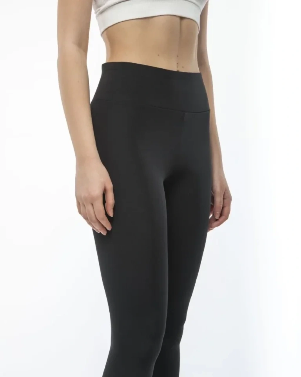 Yüksek Bel Geniş Kemer Dalgıç Tayt - Siyah
