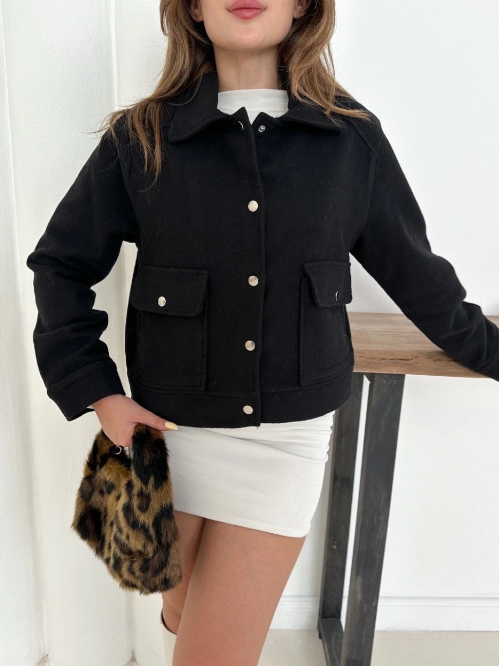 Astarlı yaka detaylı artos ceket siyah st2651019